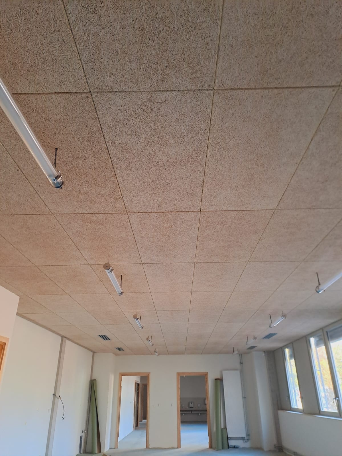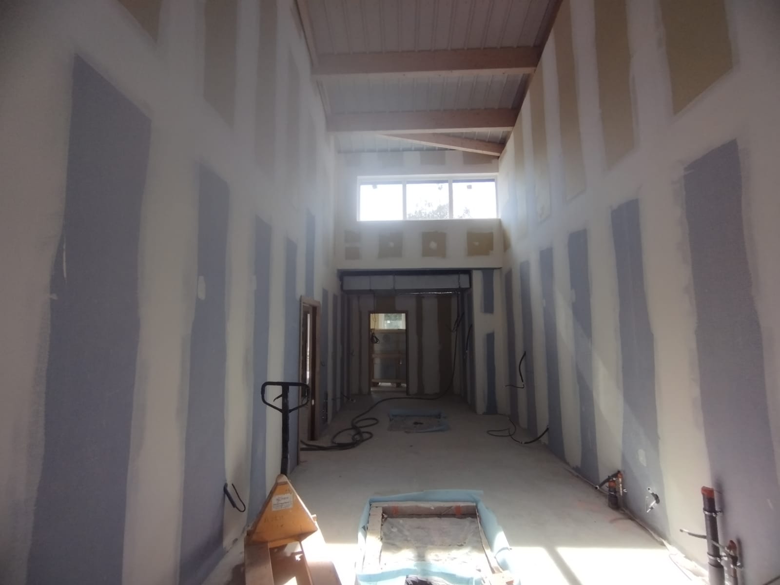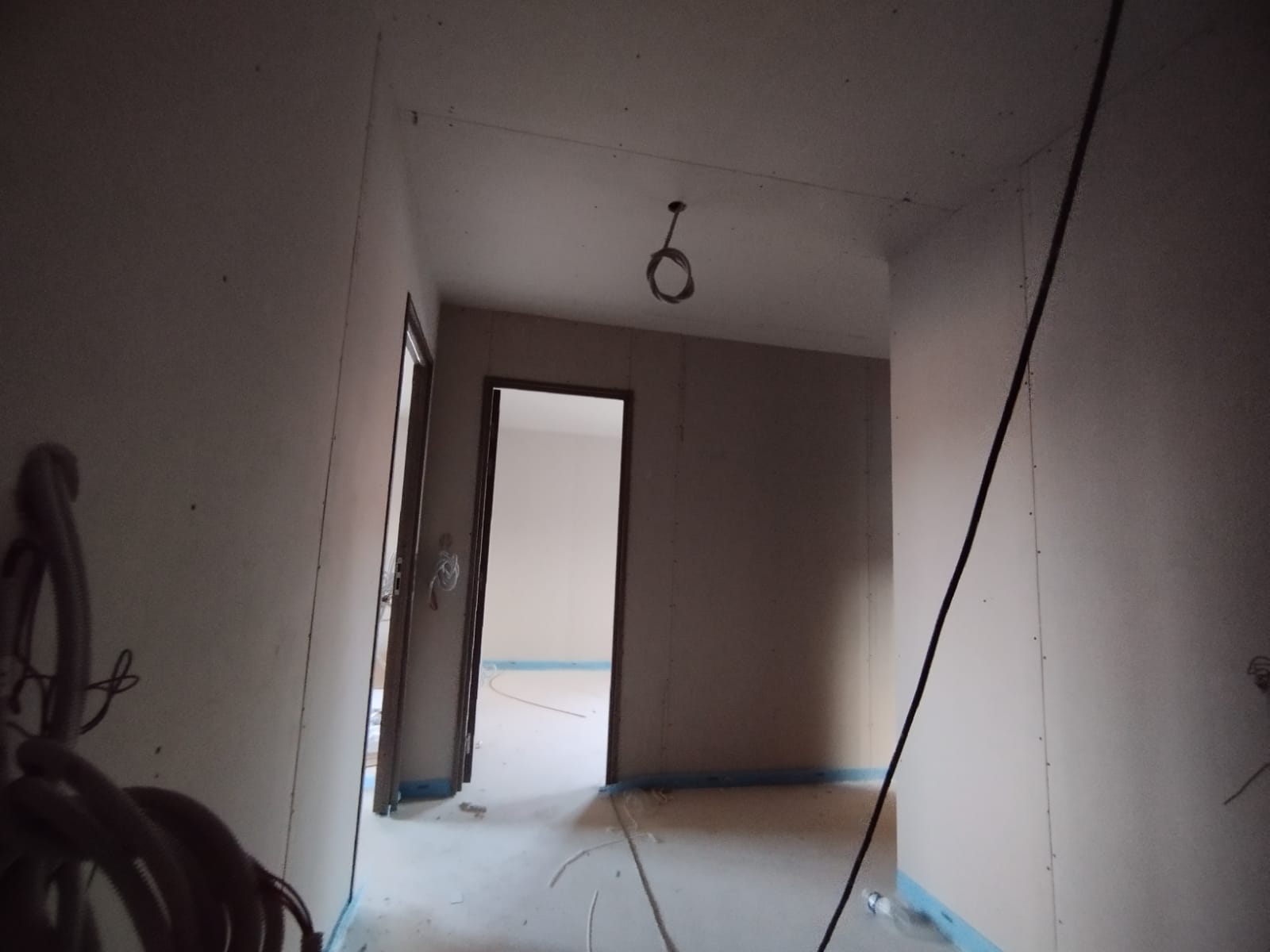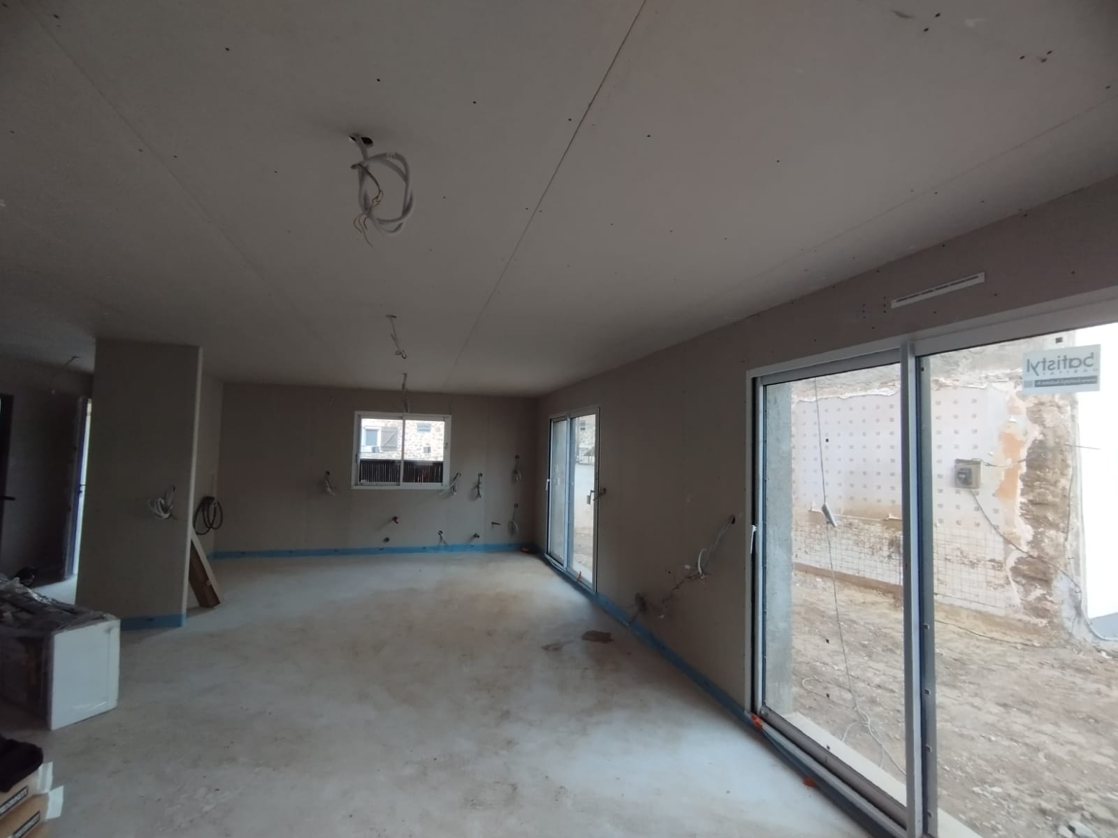 Les travaux de plâtrerie incluent l'application d'un enduit de plâtre sur les murs et plafonds ainsi que l'intégration d'une isolation thermique.